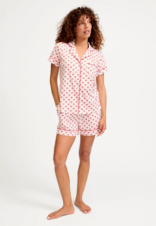 The Olivia Wide Leg Pima Pajama Set Red Timeless Toile Petite Plume