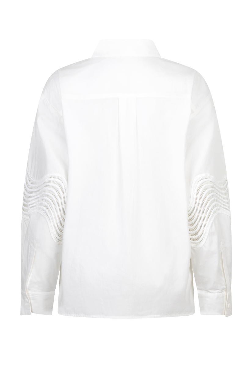 A classic white button-down — with a feminine twist. This Esqualo poplin blouse feels crisp and polished, elevated by soft wave lace detailing that adds just the right amount of texture and interest.