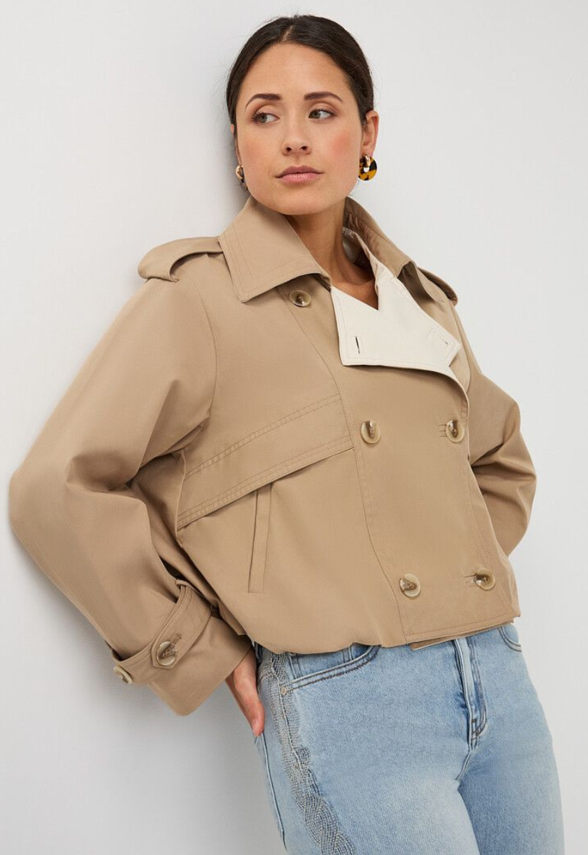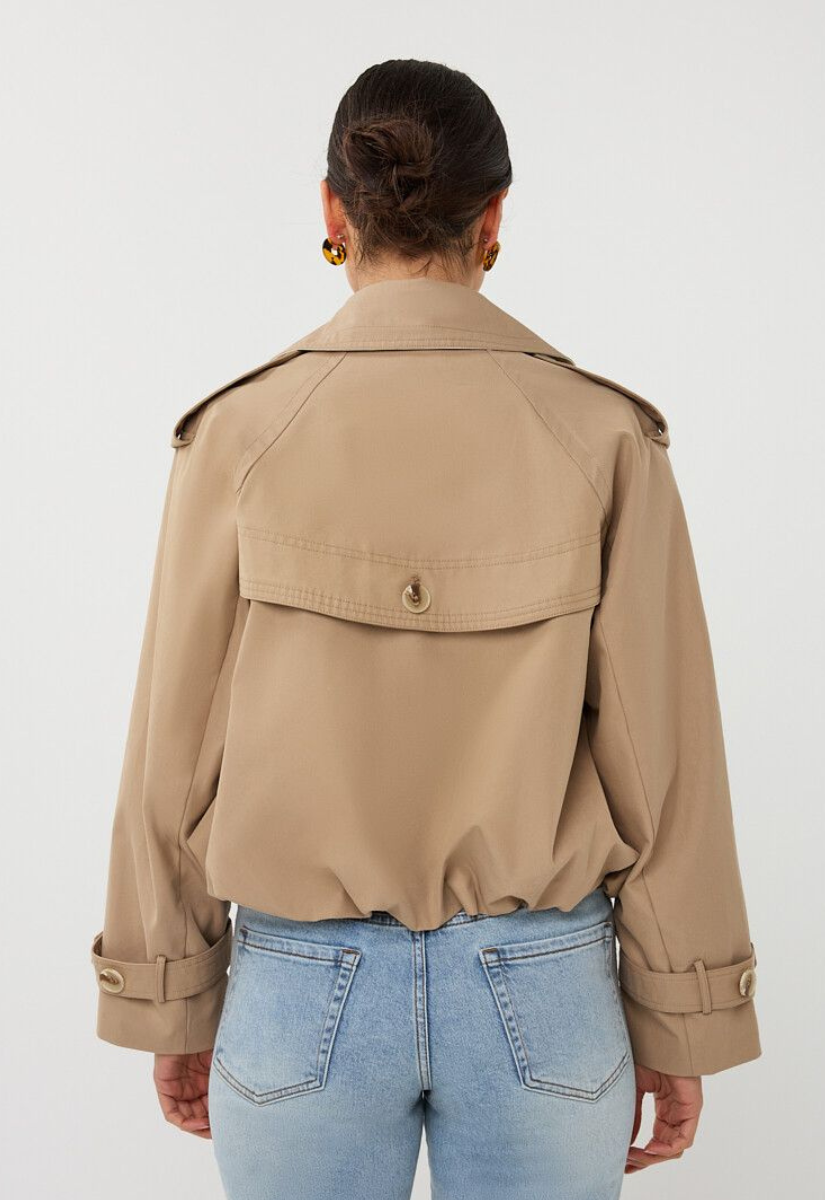 A fresh take on a forever classic — this Esqualo trench is tailored, modern, and just the right amount of unexpected. With its cropped silhouette and subtle bubble hem, it gives the timeless trench a playful, fashion-forward twist.