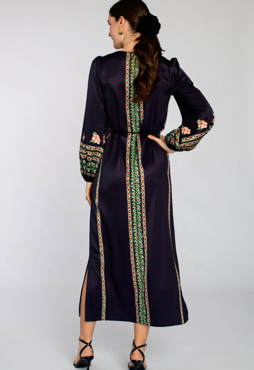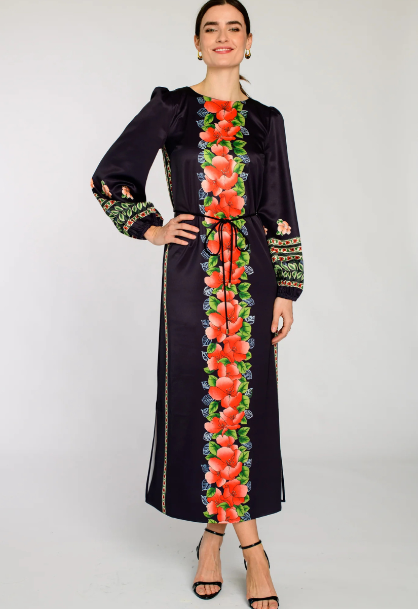 Dawn is a relaxed maxi dress, elevated with a stunning Holiday print, balloon sleeves, and an optional cord belt. She is one of our favorite picks for this time of year, perfect for staying stylish and comfortable throughout the Holiday season.