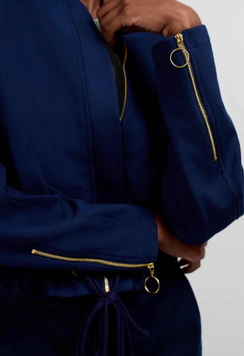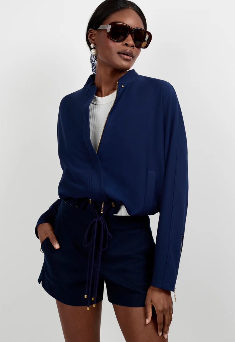 A wonderfully comfortable take on the utility trend, this jacket is made of our signature Cozy Ponte. It features a banded collar, a concealed front zip closure, front welt pockets and a back yoke. It's finished with a drawstring waist that you can adjust to perfect the fit.