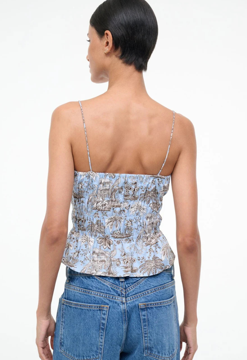 The Ayla is a cotton poplin cami with a smocked bodice and elastic neckline. Featuring a slightly cropped silhouette perfect for high-waisted bottoms.