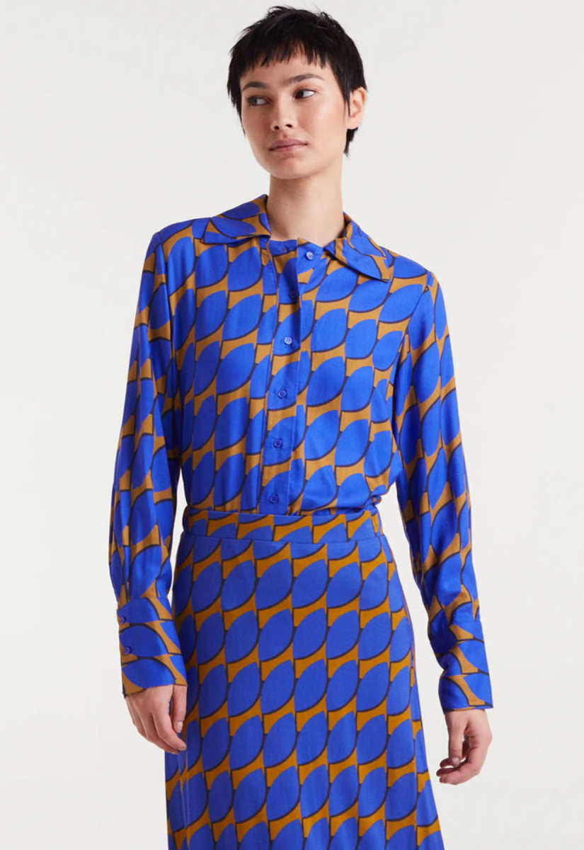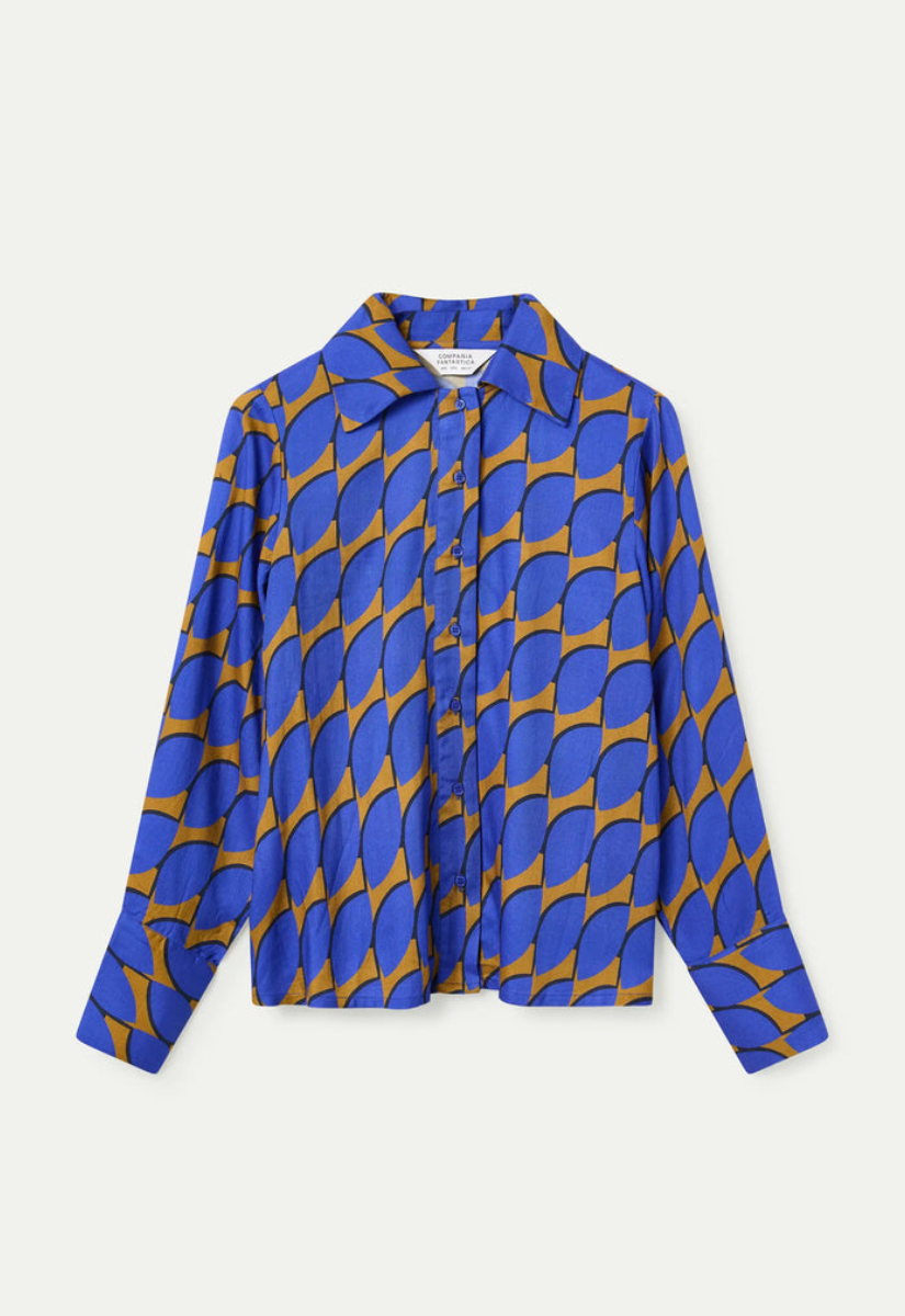 Viscose twill shirt with a Skouros Big print. Featuring a V-neckline and long sleeves with double-button cuffs. Button-front closure.