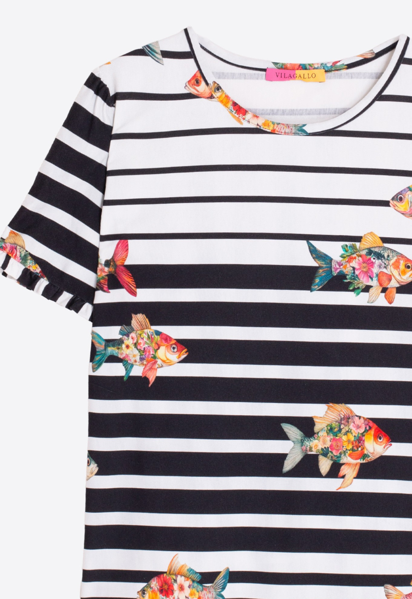 A classic stripe with a playful twist—this Vilagallo tee brings a burst of personality with colorful fish motifs that feel equal parts coastal and chic. Easy, fun, and just the right amount of statement.