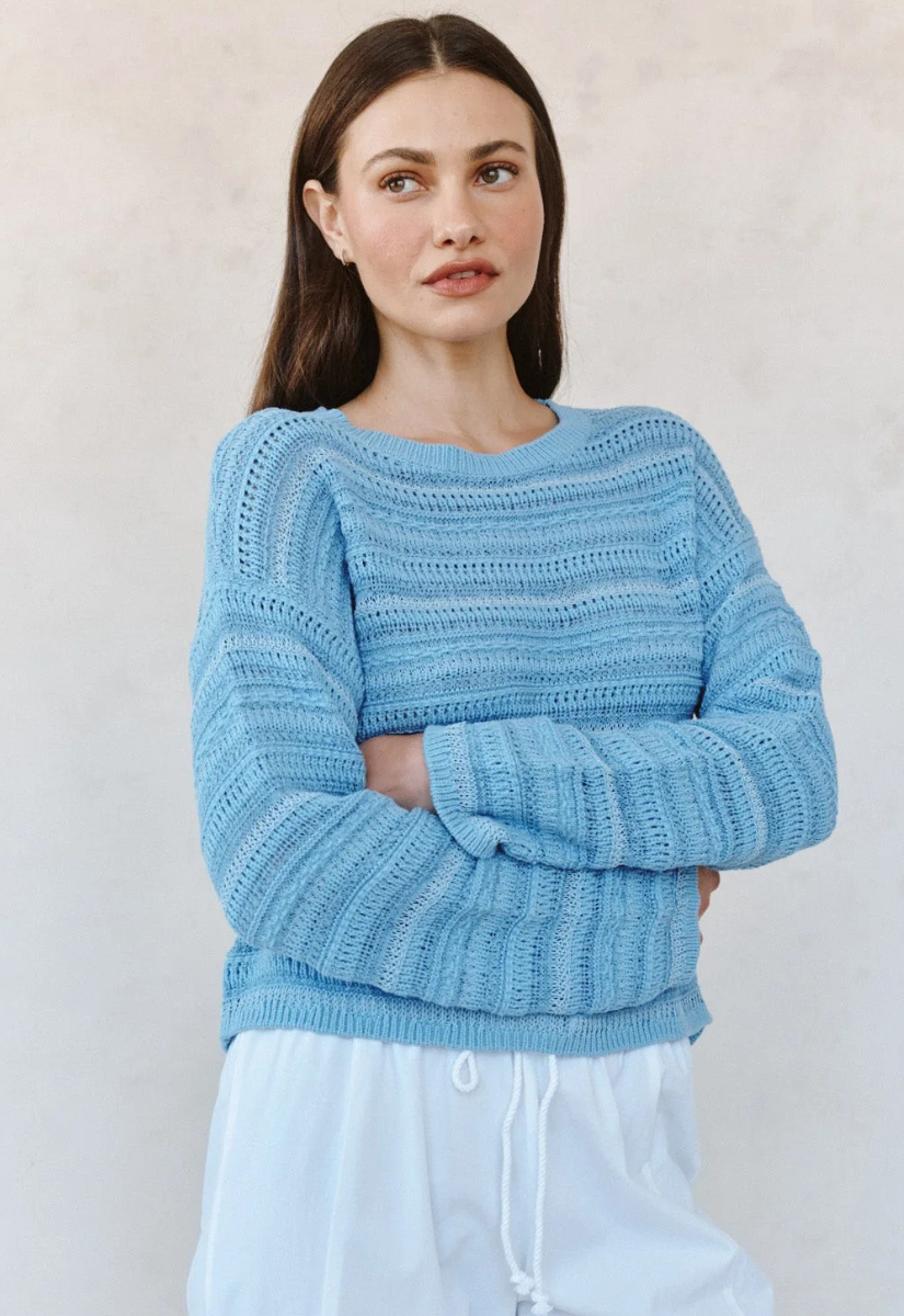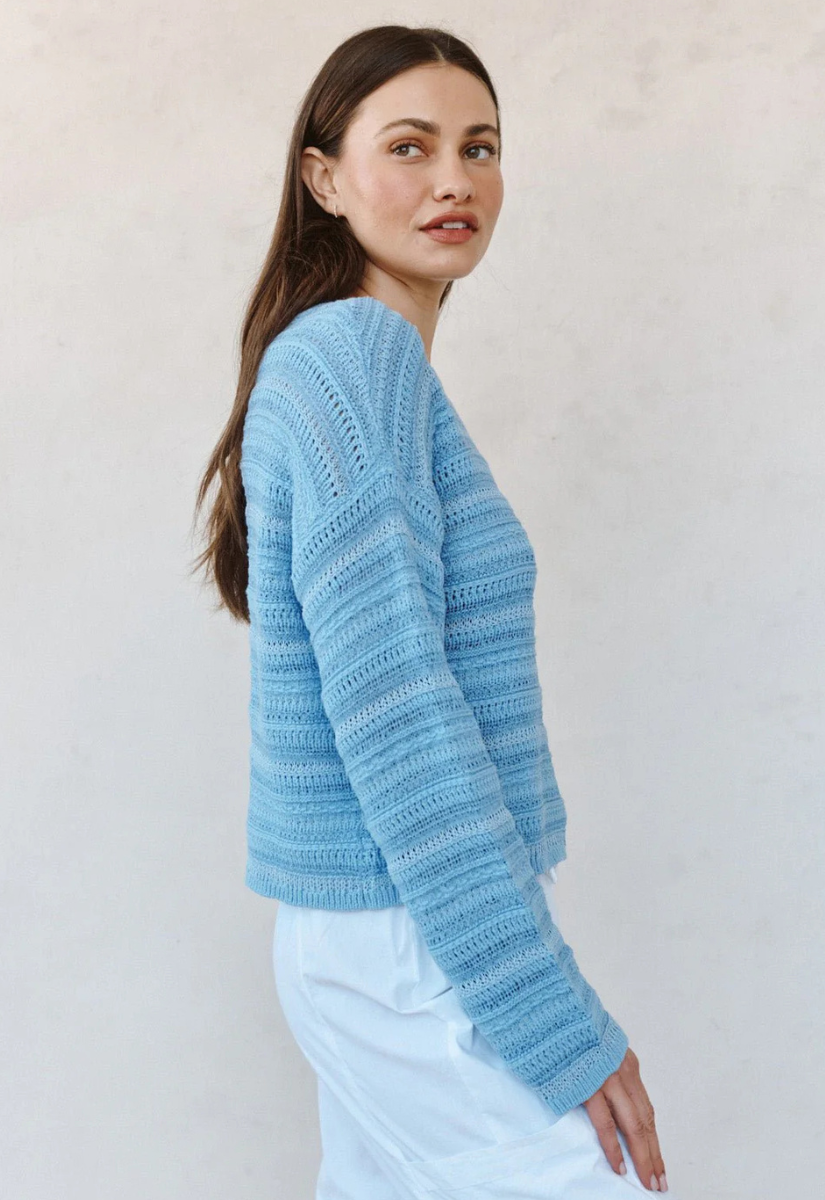Textured Crewneck Sweater Sea Breeze Blue - Bella Dahl