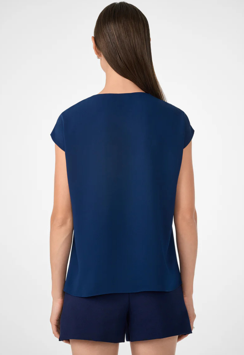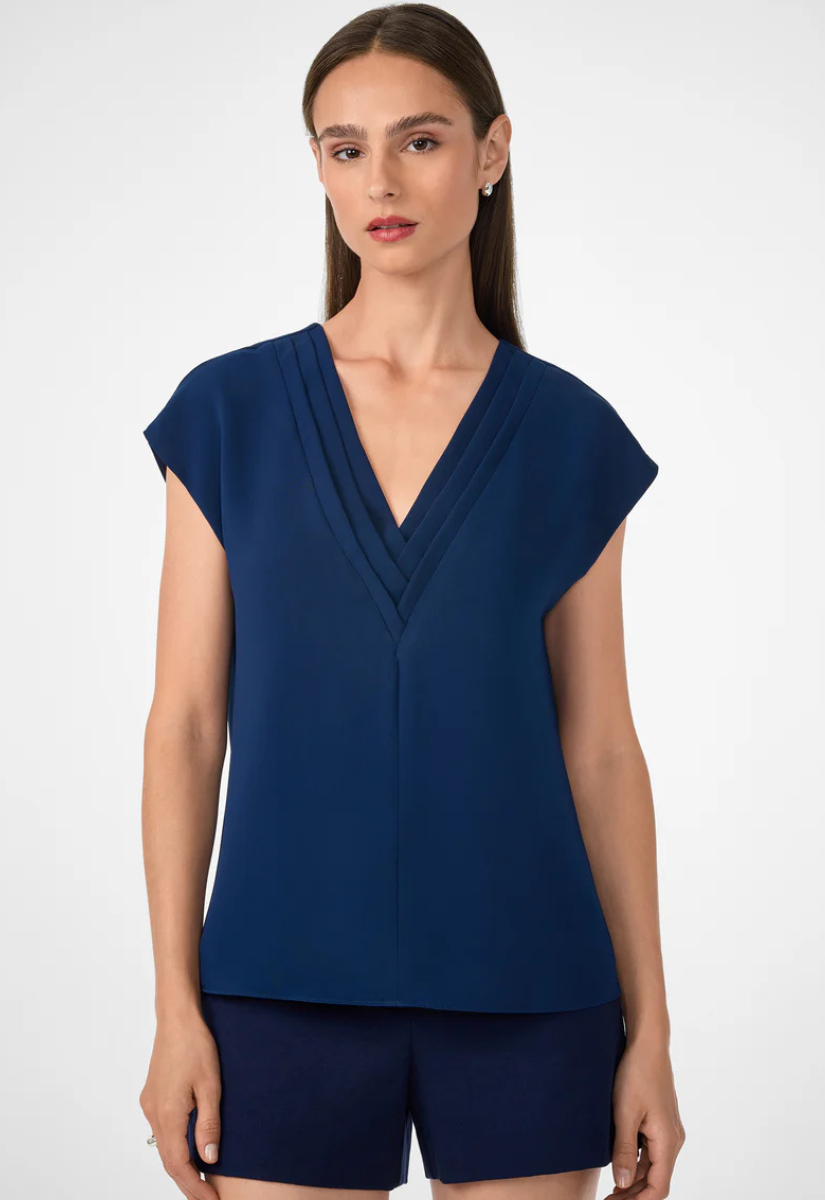 Start all your outfits with elevated basics like this sleeveless V-neck top. This lightweight, drapey double georgette shirt features a pleated detail at the neckline for a polished finish.
