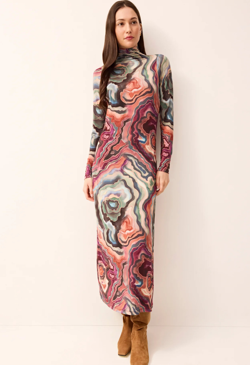One of our Founder’s favorite seasonal silhouettes, this figure-skimming turtleneck dress is crafted from soft jersey knit that enhances Paxton’s elegant lines.