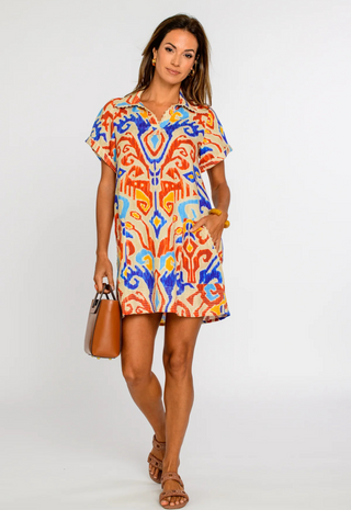Short Sleeve Taylor Dress Ikat Multi - Elizabeth James