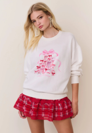 The Olivia Wide Leg Pima Pajama Set in Antique Red Ticking Petite Plume