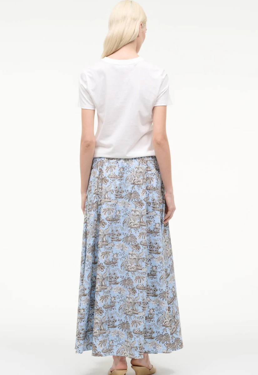 The Axel is an a-line maxi skirt crafted in cotton poplin. This style features an easy pull-on style and features an elastic band at the back and side pockets.