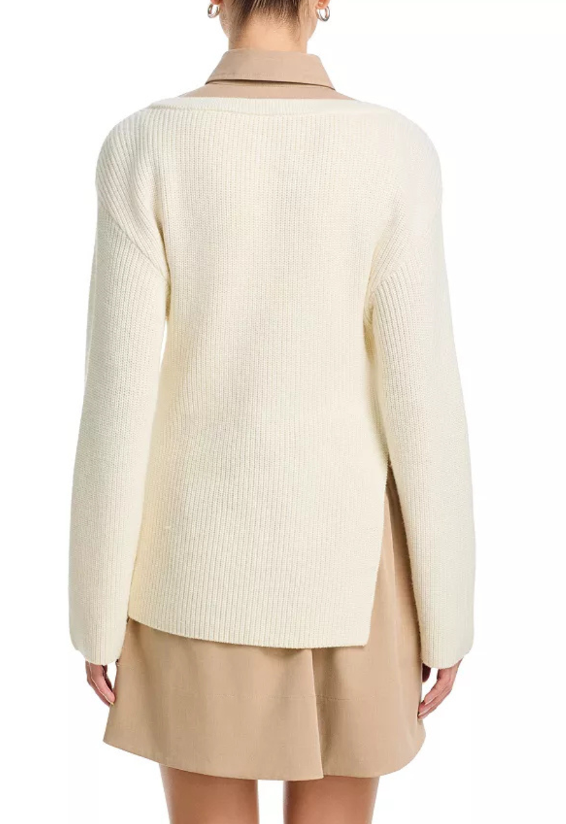Knit layer with side slit over contrast skirt