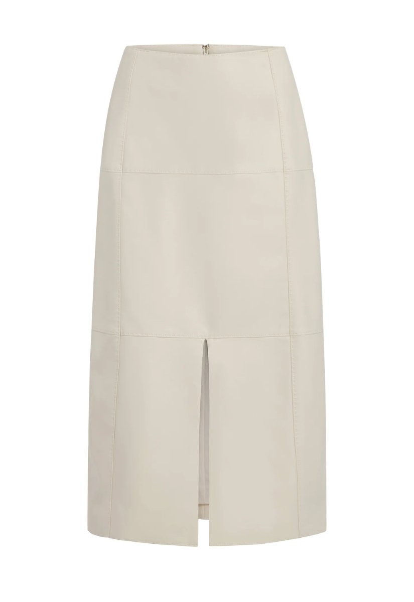 The Elliot pencil skirt certainly isn’t just for the office. With a figure-skimming silhouette that’s fitted at the waist and hips, it adds a touch of glamour beyond the canonical 9-5, extending into cocktail hours and special occasions. Outfitted in our neutral Polar colorway, it plays well with the Lonnie sweater in Polar for a luxe layered effect.