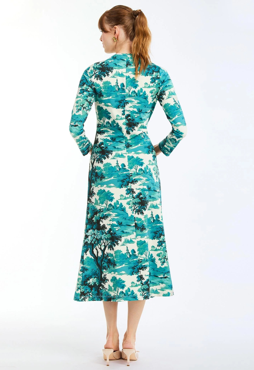 The Gabriella Midi Dress in Ceramic Toile is an elegant daytime style with effortless polish. Crafted in soft printed stretch jersey, this body-skimming midi features delicate ruching at the waist that flatters every figure. Its versatile silhouette and timeless print make it the perfect piece for luncheons, daytime celebrations, or desk-to-dinner dressing.