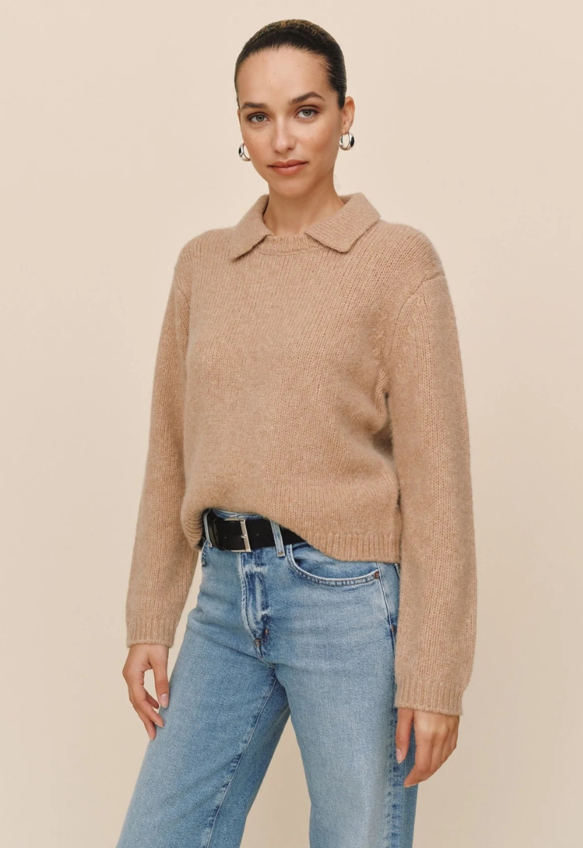 The Johnny Collar Sweater is a timeless knit that combines ease and sophistication. Its soft wool-cashmere blend and gently relaxed fit make it an effortless staple for the season.