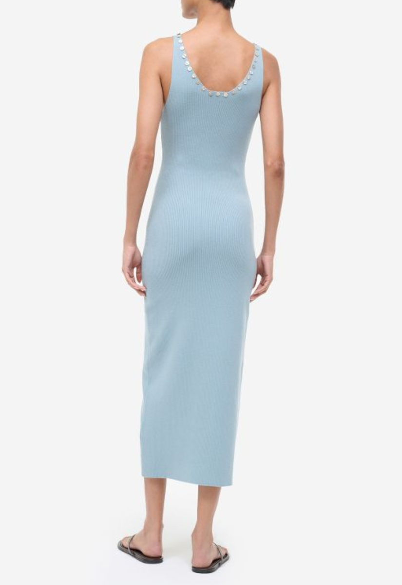 The Staud Seafoam Neva Midi Dress offers a refreshing, serene tone that instantly brightens any wardrobe. Crafted in a soft seafoam shade, it brings subtle sophistication suitable for daytime events or casual elegance. The midi length creates a balanced silhouette that flatters effortlessly. Its lightweight fabric allows for fluid movement, making it perfect for warm seasons or transitional styling.