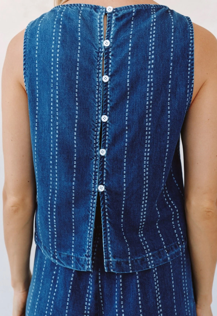 The Sleeveless Button Back Top is an elevated take on a classic sleeveless style.