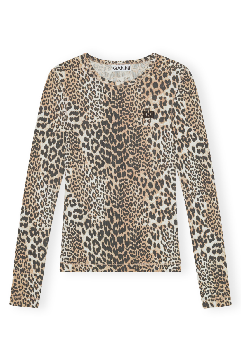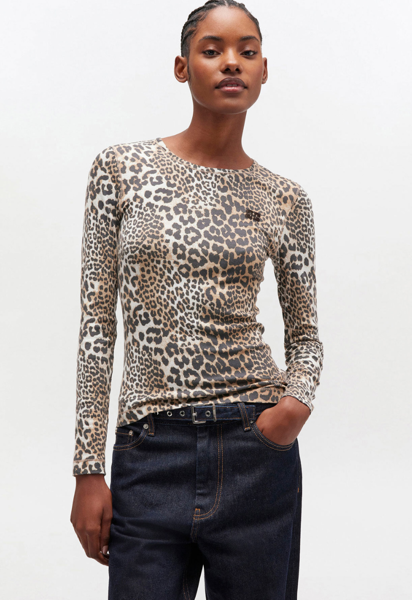 Soft Cotton Rib Leopard Long Sleeve Ganni