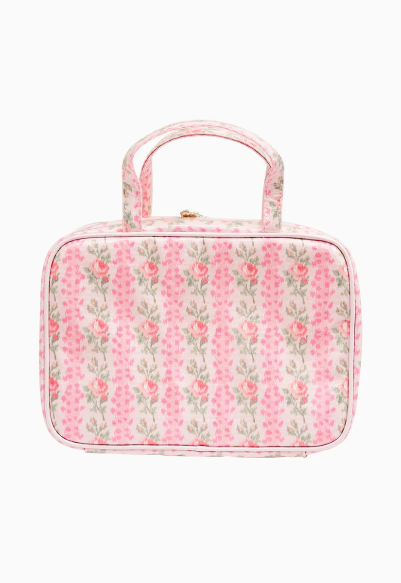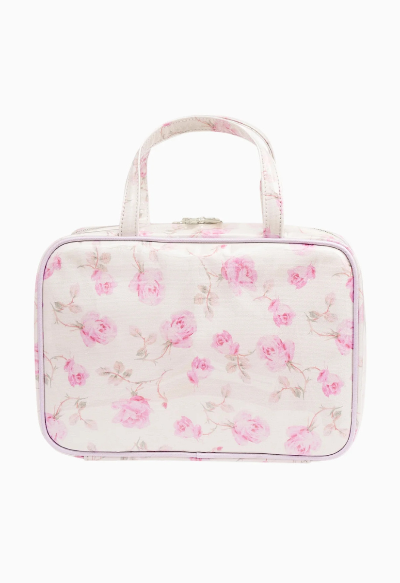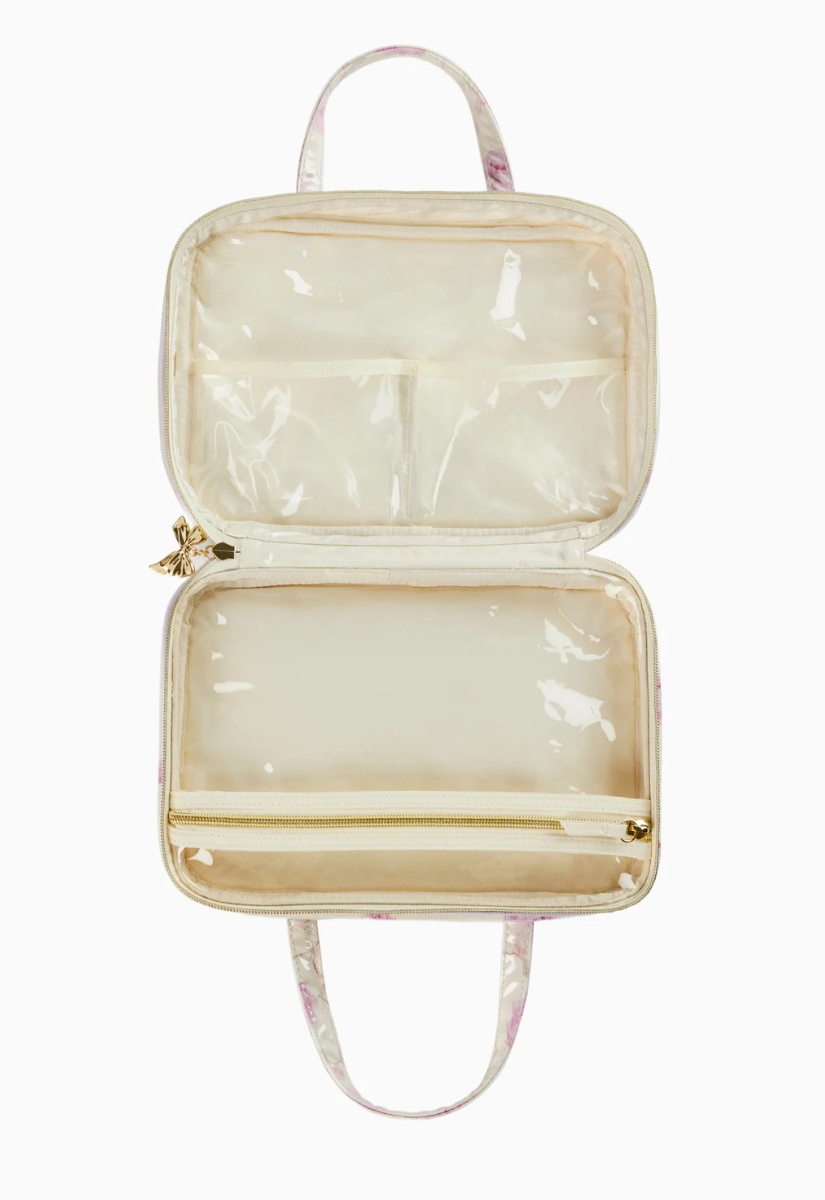 Our new Travel Box makes its debut featuring our signature floral prints all over. Designed to carry all of your cosmetics, trinkets, and treasures, this chic on-the-go bag features durable handles for easy-carry, ample room and pockets to store your pieces, and is closed with a zipper.