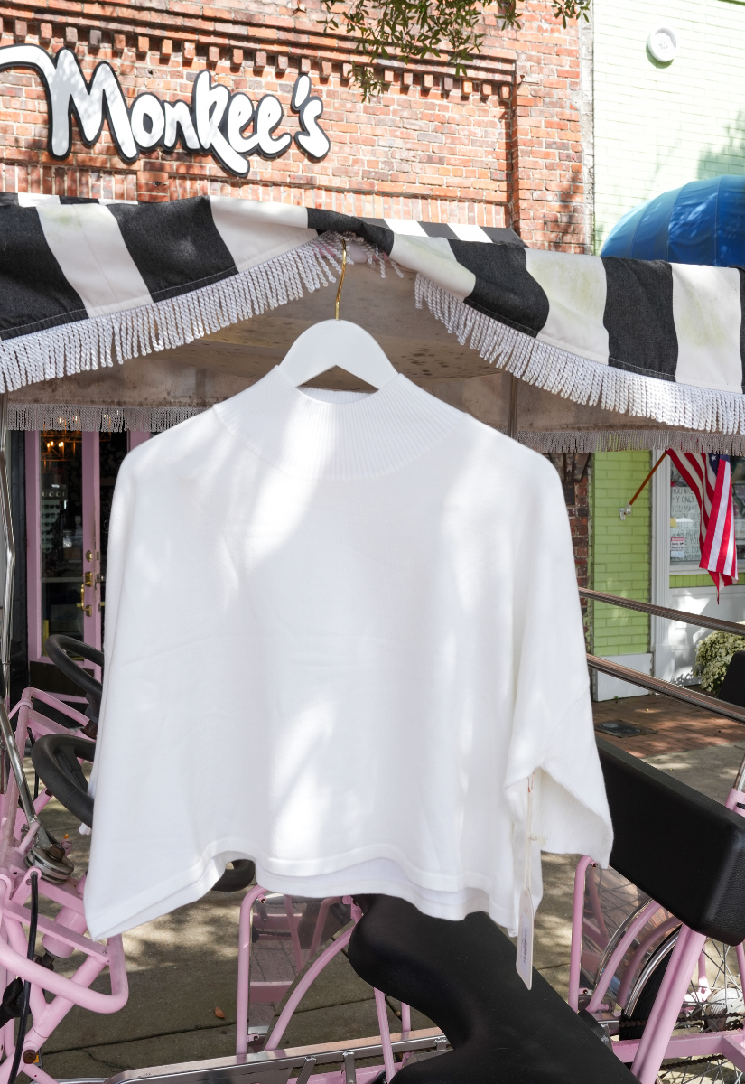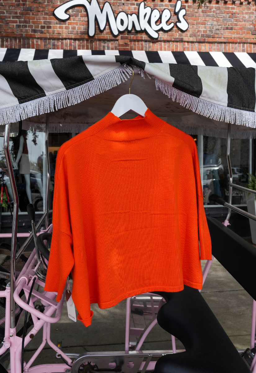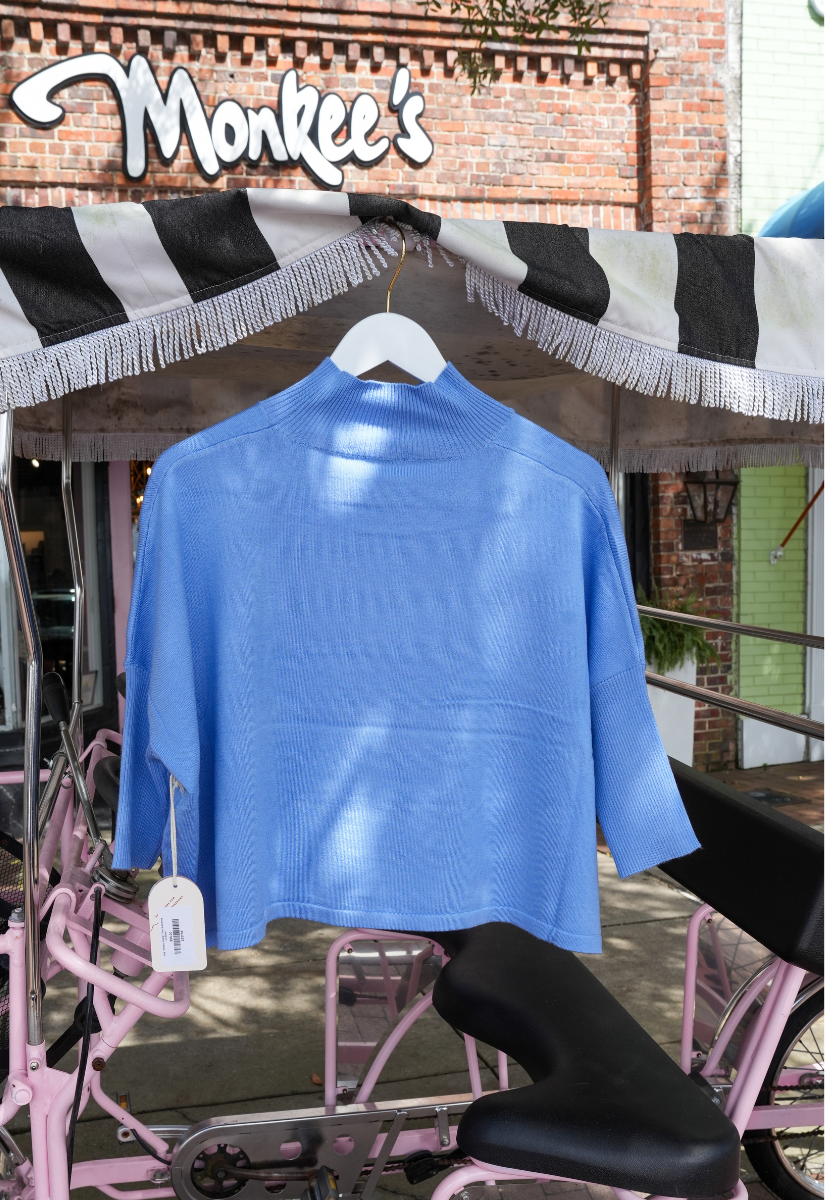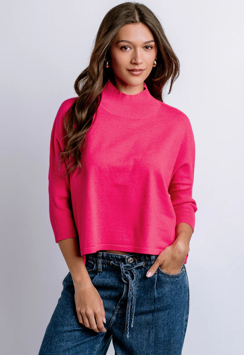 The Aja Ortho Solid Top brings effortless polish to your everyday style. Designed with a modern boxy silhouette, this soft knit features a mock neckline, 3/4 sleeves, and ribbed hem accents for a clean, elevated finish. The perfect layering piece or standalone top, it offers comfort and stretch in a vibrant solid hue.