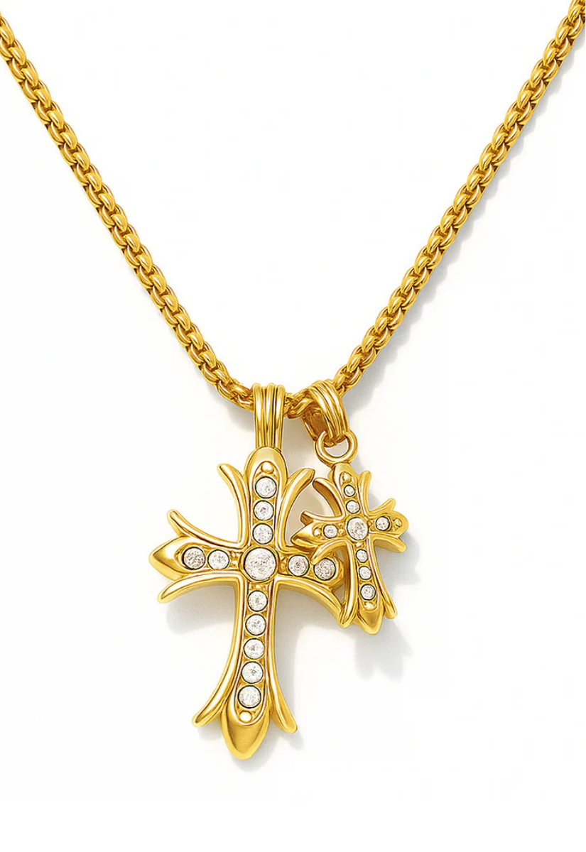 Measurements: 18 in. + 2 in. extender chain, pendants: Larger : 25.4 mm x 19.05mm. Small : 19.05mm x 6.35 mm